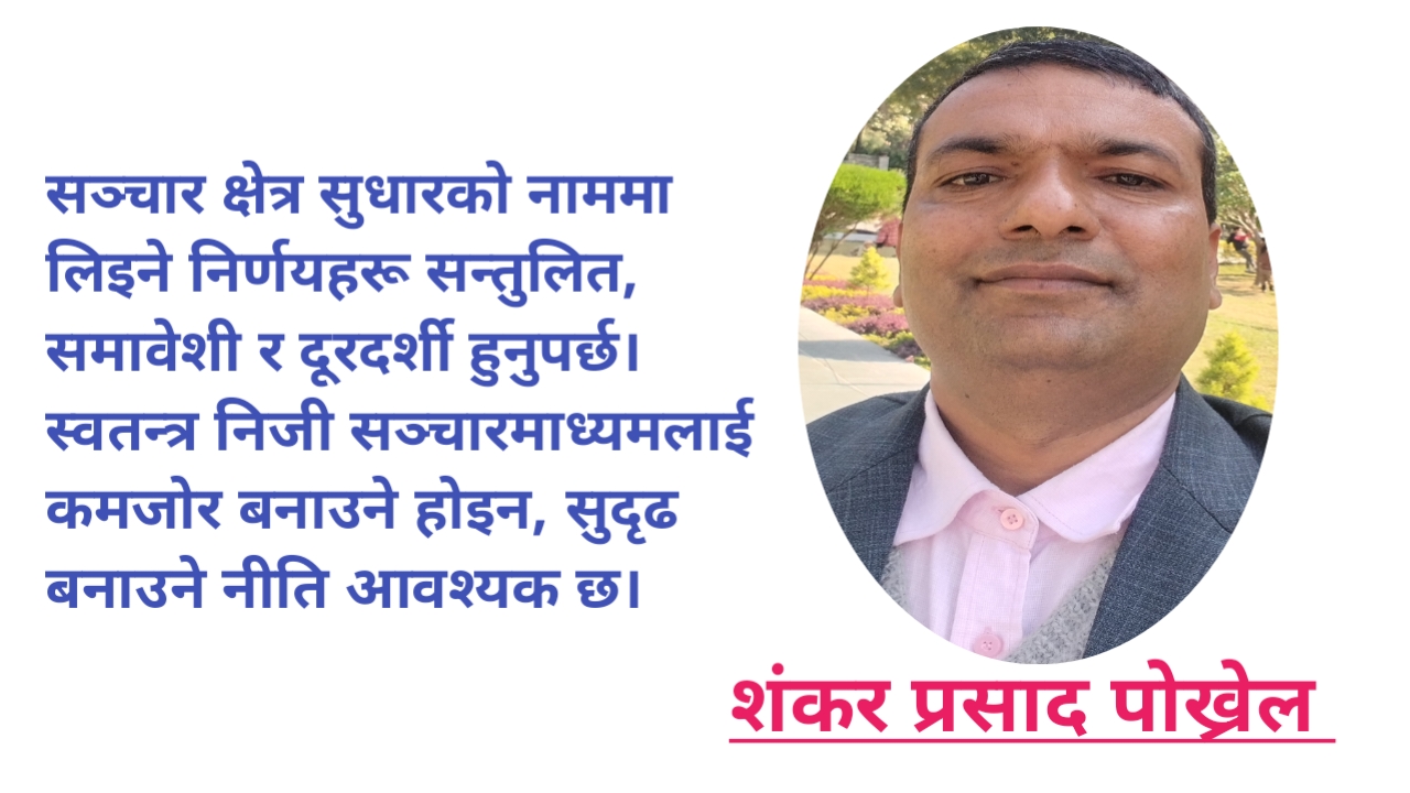 अन्ततः सञ्चार क्षेत्र सुधारको नाममा लिइने निर्णयहरू सन्तुलित, समावेशी र दूरदर्शी हुनुपर्छ। स्वतन्त्र निजी सञ्चारमाध्यमलाई कमजोर बनाउने होइन, सुदृढ बनाउने नीति आवश्यक छ। पारदर्शिता, निष्पक्षता र उत्तरदायित्व सुनिश्चित गर्दै सरकारी र निजी दुवै क्षेत्रबीच सहकार्यको वातावरण निर्माण गर्नु नै दीर्घकालीन समाधान हो। लोकतन्त्रको स्वास्थ्य बलियो मिडियामा निर्भर हुन्छ, र त्यो बलियो तब मात्र हुन्छ जब स्वतन्त्रता र अनुशासन दुवै सँगसँगै अघि बढ्छन्।