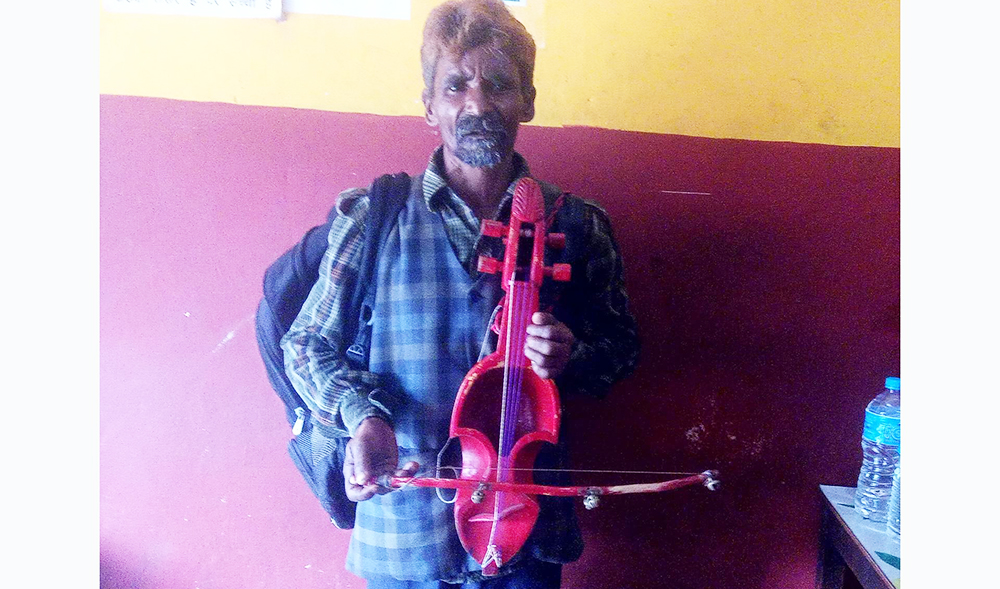 राँझा (बाँके) । जाजरकोट नलगाड नगरपालिकाका ५३ वर्षीय डम्बर गायन नेपालगञ्जमा सारङ्गीको धुनसँगै विरहका भाका सुनाउँदै आउनुभएको छ ।